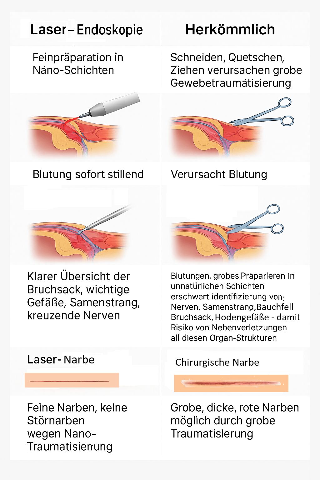Vergleich endoskopische Laser Hernien Op mit herkömmlicher Hernien Op